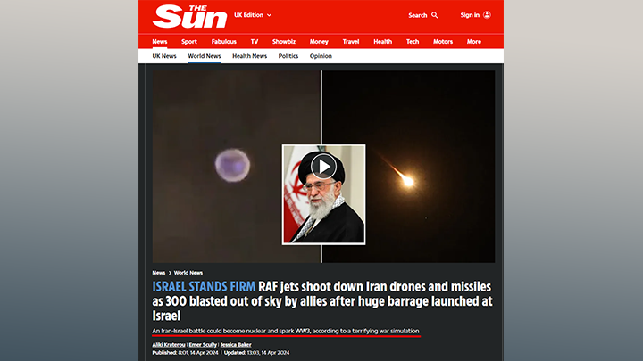 "Ирано-израильская битва может стать ядерной и спровоцировать третью мировую войну, согласно ужасающей военной симуляции"//Скриншот страницы сайта thesun.co.uk/