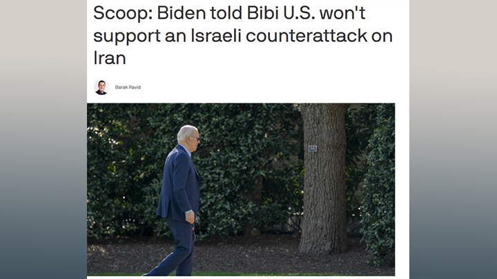 "Байден сказал "Биби", что США не поддержат израильскую контратаку на Иран"//Скриншот страницы сайта axios.com