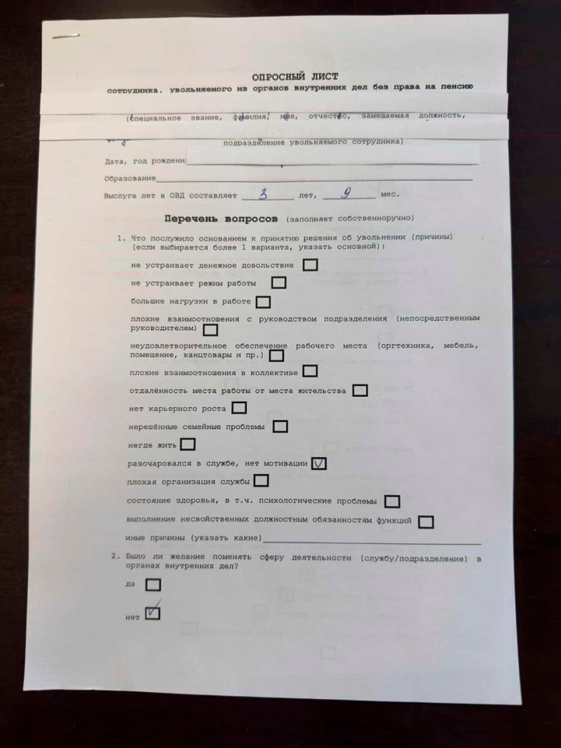 Опросник МВД: не зарплата волнует людей в полиции. Фото: ТГ-канал "Бывший опер (полиция)"