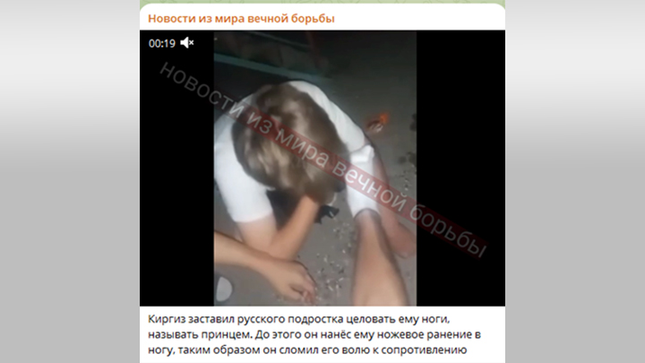 Киргизская милиция поначалу квалифицировала расправу над мальчиком как хулиганство и отпустила виновника. Скрин с ТГ-канала "Русский мир"