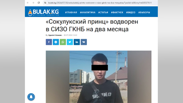 "Сокулукского принца" закрыли в СИЗО под нажимом общественности только через неделю после нападения на подростка. Скрин с сайта bulak.kg