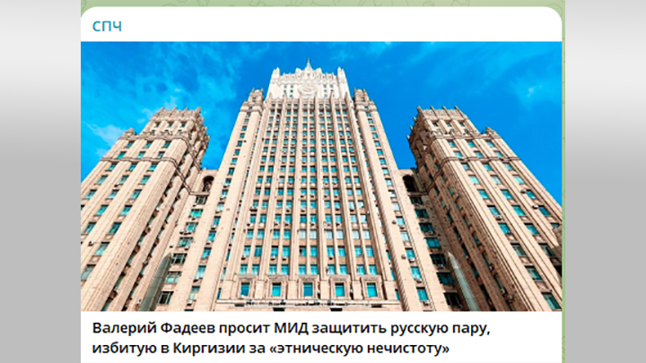 Глава СПЧ призвал русский МИД защитить сограждан, избитых в Киргизии за "этническую нечистоту". Скрин с ТГ-канала "СПЧ"