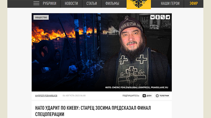 Старец Зосима предвидел "колотню". Скрин с сайта Царьграда