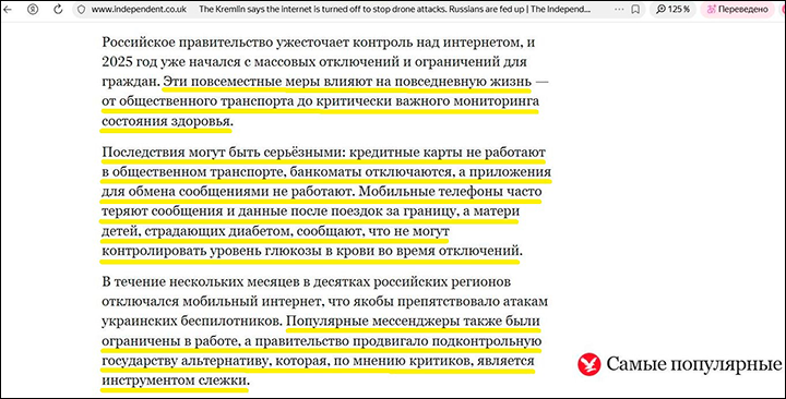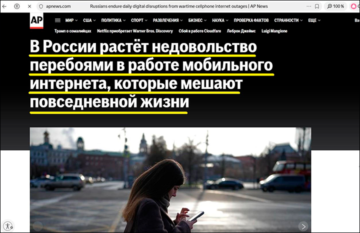 Сначала, ещё летом текущего года, эту песню "запела" газета The Washington Post. С нескрываемым злорадством либеральное издание сообщило читателям, что примерно с мая 2025-го временные отключения мобильного интернета в России стали регулярными.