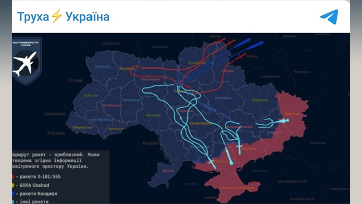 Направления ракетных атак. Скрин с ТГ-канала "Труха".