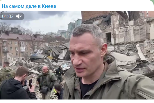 Но по ним не прилетело. К сожалению. К месту падения русских ракет оперативно примчался мэр Киева Виталя Кличко, который в этот раз даже вполне себе осилил спич на мове практически без ошибок.