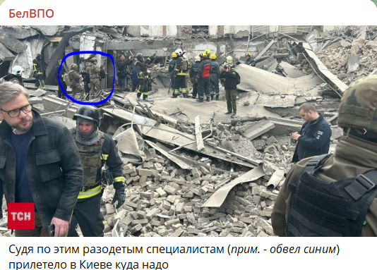 Судя по этим разодетым специалистам (прим. - обвел синим), прилетело в Киеве куда надо,