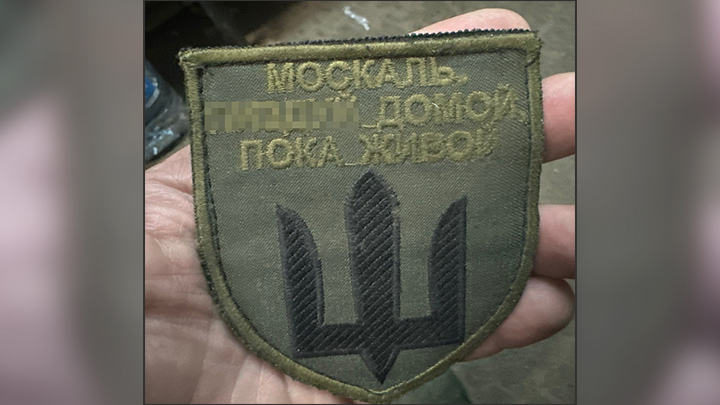 Украинский шеврон с матерным словом. Пленный, который его носил, оправдывался тем, что такие шевроны в обязательном порядке всем выдавали. Фото предоставлено Виталием Басовым