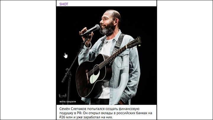 Вклады Слепаков предпочитает хранить в русских банках. Скриншот: ТГ-канал Shot