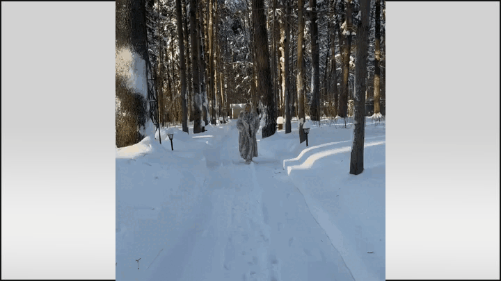 Конечно, наслаждаться суровой красотой русской зимы гораздо приятнее в условиях абсолютного комфорта. Пока верные помощники по дому наводили идеальный порядок, тщательно расчищая дорожки от свежевыпавшего снега и превращая сугробы в аккуратные белые бордюры, Марина могла позволить себе безмятежно созерцать зимнюю идиллию. Прогулка по безупречным аллеям поместья превратилась в элегантный выход в свет, где главной деталью образа стала роскошная шуба.