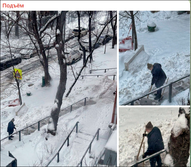 Но не все праздно любовались зимними видами или наводили красоту на своих морозных участках. Были и те, кто подрядился помочь коммунальщикам в их нелёгкой борьбе со снегом.
