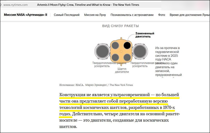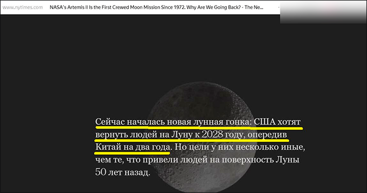 Американцы не скрывают: полёт к Луне – это старт космической гонки с Китаем. Скриншот: интернет-сайт nytimes.com (автоперевод)