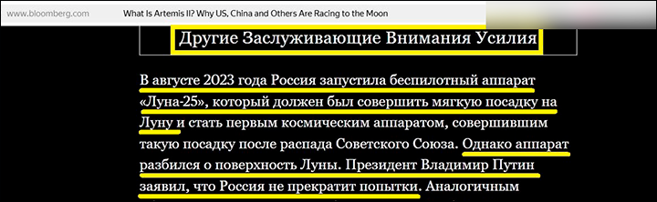 К сожалению, сейчас Россия для США в космосе – мы лишь "прочие, заслуживающие внимания". Скриншот: интернет-сайт bloomberg.com (автоперевод)