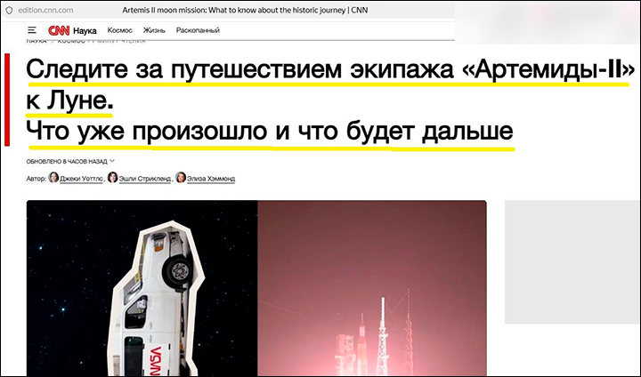 Новый пилотируемый полёт к Луне важен – но пресса США целенаправленно делает из него событие преувеличенно исторического значения. Миссия преподносится как чуть ли не скачок в развитии человеческой цивилизации, о ней пишут и говорят везде, на первых страницах и в прайм-тайм.