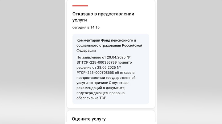 Сначала, в апреле 2025 года, Соцфонд отказал ему в "обеспечении техническими средствами реабилитации, услугами, протезными изделиями" из-за отсутствия "рекомендаций в документе, подтверждающем право на обеспечение ТСР".