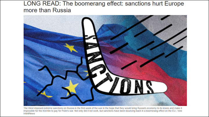 Эффект бумеранга: санкции сделали Европе больнее, чем России. Скриншот: intellinews.com