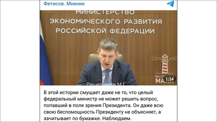 Скриншот с ТГ-канала "Фетисов. Мнение"
