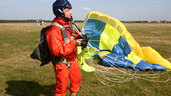 И вот самолёт набрал 800 метров. Пётр шагнул в небо – отсчитал положенные мгновения, дёрнул за кольцо, и – ничего. Парашют не раскрылся. А земля приближается с огромной скоростью. Надо открывать запасной парашют, но сначала – отцепить основной. Но тот не отстёгивается.