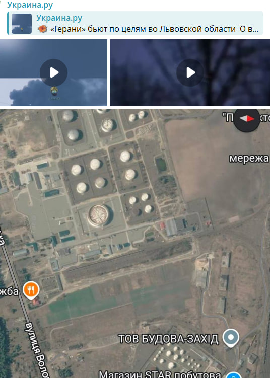 Не менее интересно выглядит атака дронами-камикадзе по территории Западной Украины. Группа "Гераней" атаковала Ровенскую область, однако цели пока неизвестны. Несколько единиц сменили траекторию полёта и полетели во Львовщину (в Бродах). И там, судя по кадрам, начался настоящий ад.