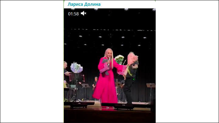 Лариса Долина выходит с концертами. В этом году она увеличила их количество. Скриншот ТГ-канала "Звёздная пыль"