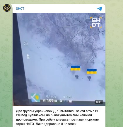 Тем временем источники с фронта сообщают о попытке прорыва боевиков ВСУ под Купянском. По данным SHOT, группы украинских ДРГ пытались зайти в тыл Вооружённых сил России под Купянском, но были уничтожены русскими дроноводами. При себе у диверсантов нашли оружие стран НАТО. Ликвидировано 8 человек.