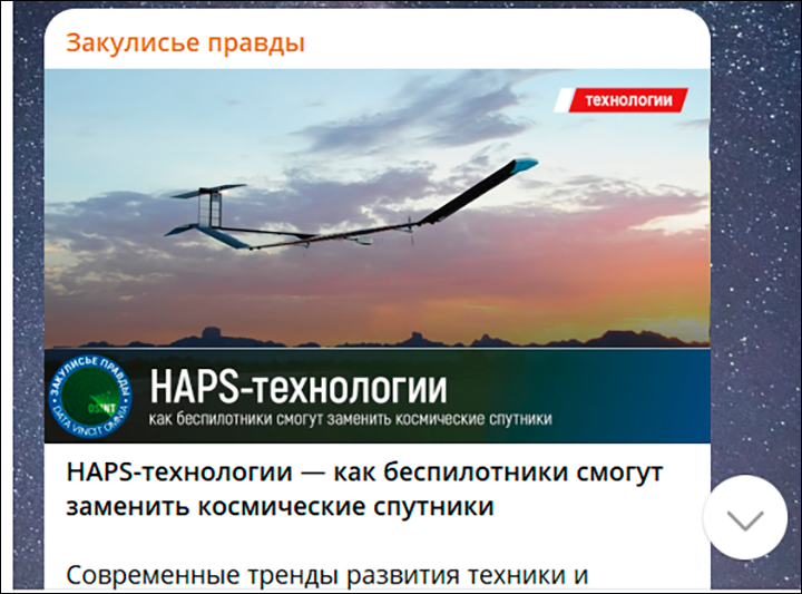 То, что псевдоспутники способны заменить орбитальные аппараты, а также являются удачной платформой РЭБ для подавления спутниковой связи, специалисты пишут не первый год. Скриншот: ТГ-канал "Закулисье правды"