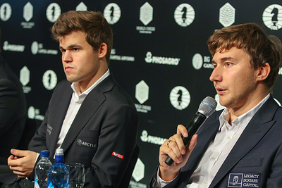 Магнус Карлсен (слева) и Сергей Карякин . Фото: globallookpress.com