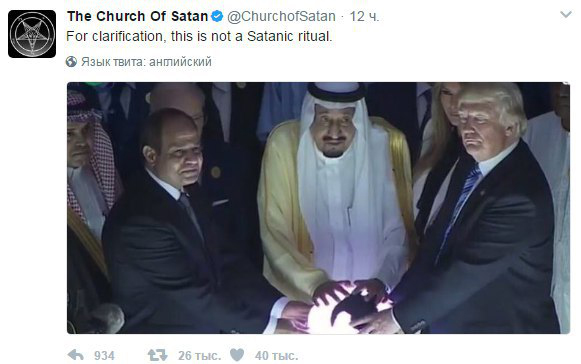 Также прикосновение к шару породило множество предположений о каком-то магическом сеансе или даже сатанинском ритуале, который устроил Трамп с ближневосточными политиками. Правда, «Церковь Сатаны» предпочла откреститься от причастности к данному акту.