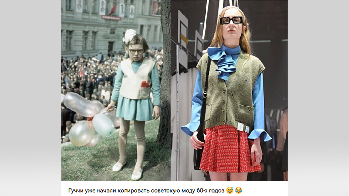 Над Гуччи не смеялся только ленивый. "Шмотки из бабушкиного сундука" – резюмировали в комментариях. Фото: vk.com