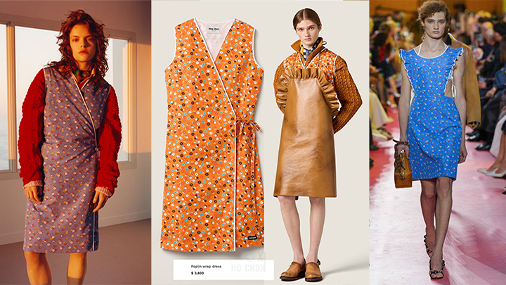 Гуччи, например, показали прорывной образ, который заставил русскоязычную часть интернета рыдать от смеха. А когда основная истерика улеглась, Миу Миу тоже "выкатили" потрясающую модель – "бабкин халат с рынка". Выглядит ровно так же, как всеми узнаваемый халат. Да, без каких-то изменений. В таких ещё хлебушек во двор голубям выносили.