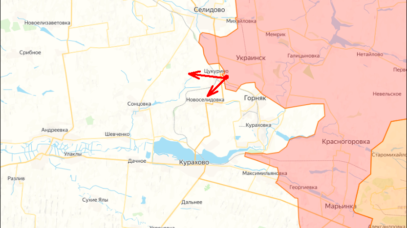Также сообщается о наступлении на запад от Цукурина, в сторону села Новодмитровка, взятие которого будет означать рассечение коммуникационной линии Селидово — Курахово и дальнейшую фрагментацию украинской группировки на этом направлении.