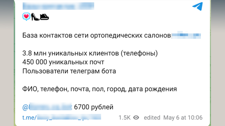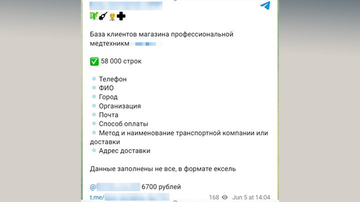 И всё это даже не говоря о многочисленных ботах в том же Telegram, через которые можно достаточно просто и за плату всего в несколько тысяч рублей получить внушительные базы данных, украденные у сервисов доставки еды, отелей, ретейлеров и даже частных медицинских учреждений. Вот лишь некоторые примеры: