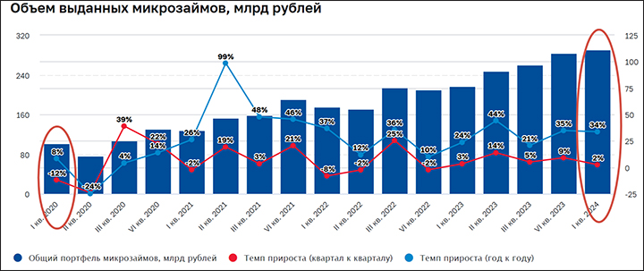 Только за один апрель 2024-го, по сообщению Национального кредитного бюро, было выдано 2,93 млн микрозаймов. Большинство из них в Москве (162,7 тыс.), Московской области (142,2 тыс.), Краснодарском крае (115,1 тыс.), Свердловской области (96,9 тыс.) и Башкортостане (96,6 тыс.). Причём, что интересно, 80 процентов общего объёма займов выдавалось онлайн, то есть в дистанционном формате.