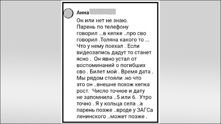 Тем временем некая жительница Юрги написала сестре Алексея, что видела в троллейбусе похожего на него парня. Двигался он неуклюже (протез?), с кем-то обсуждал по телефону СВО и говорил, что "больше здесь не может" – там ребята гибнут. Однако версию о том, что Алексей якобы мог уйти на СВО без предупреждения, его жена в беседе с Царьградом отвергла: