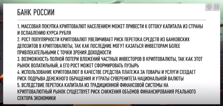 Никита Комаров: Давайте сейчас разберём аргументацию Центробанка о том, что криптовалюта стимулирует отток капитала, увеличивает риск перетока активов с банковских депозитов в криптовалюты, снижает объём финансирования реального сектора экономики. Но, если задуматься, вся политика Банка России направлена как раз на достижение этих целей. Это им надо было что-то придумать, чтобы обосновать запрет криптовалют? Или у них какое-то раздвоение идёт?