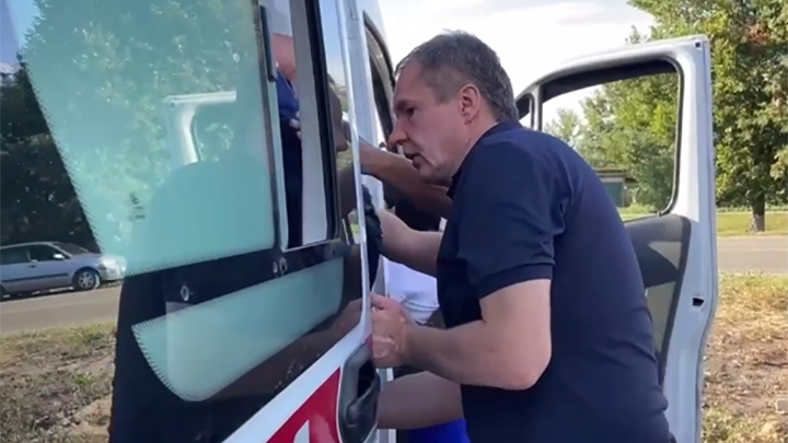 Вражеский дрон вчера атаковал машину, ехавшую перед автомобилем белгородского губернатора Вячеслава Гладкова. Буквально на глазах главы региона и сопровождающих его лиц. Срочно вызвали скорую. Две женщины получили осколочные ранения. Гладков помог им дойти до скорой.
