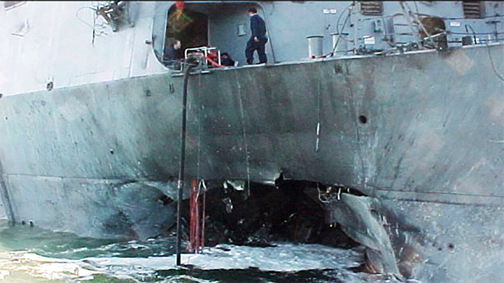Напомним, что теракт случился в Йемене в октябре 2000 года. В ходе заправки корабля к его борту подплыла лодка, начинённая взрывчаткой, с двумя смертниками-террористами. Взрыв проделал огромную дыру в камбузе корабля и убил несколько членов экипажа. Впрочем, Иран тут был ни при чём, а ответственность за теракт взяла на себя "Аль-Каида"*.