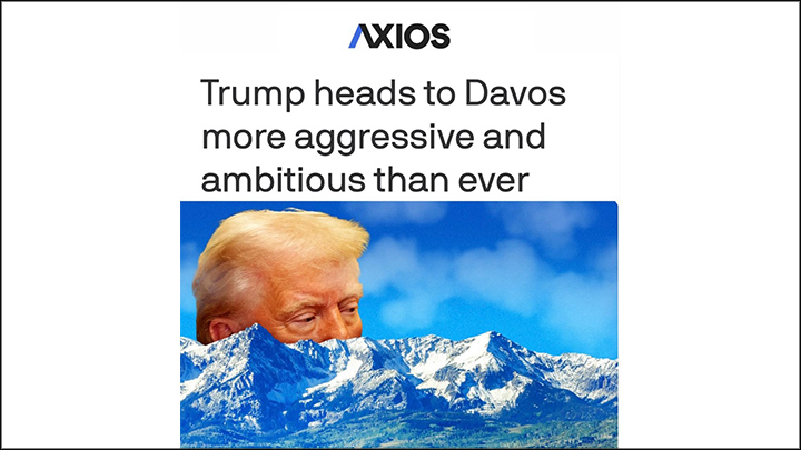 "Трамп едет в Давос более агрессивным и амбициозным, чем когда-либо": Axios пишет, что Трамп на форуме в Давосе публично унизит европейцев. Скриншот страницы сайта издания