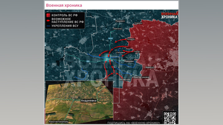 Обстановка на Донецком направлении для ВСУ становится всё более ужасающей. Кураховка практически полностью занята русской армией. С юга наши войска уже в десятке километров от Разлива, отрезая Курахово западнее, и продвигаются к Константинополю.