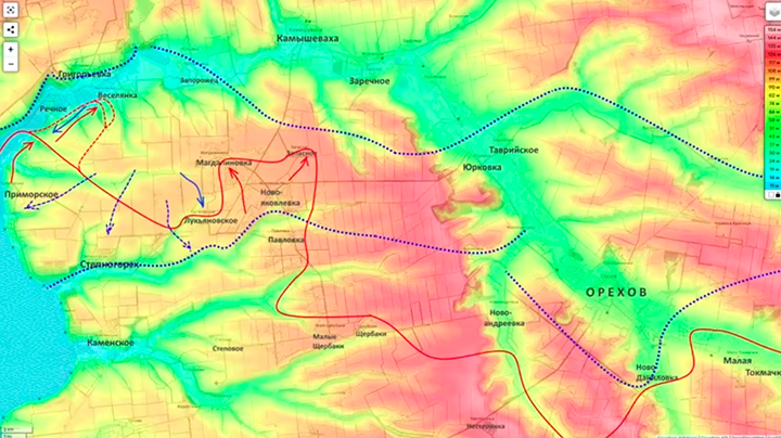 Обстановка в окрестностях Степногорска остаётся сложной. Украинские формирования пытаются выбить российские подразделения как из остатков самого посёлка, так и расположенных рядом Приморского и Павловки,