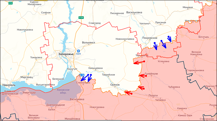 То есть даже с фронта, а не с флангов, продвижение к Орехову идёт полным ходом. И не забываем о наших действиях со стороны Гуляйполя,