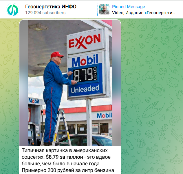Цены на американских АЗС – такое же оружие Ирана, как и ракеты, атакующие американские базы у Персидского залива. Мемы на этом фоне появляются и разлетаются как горячие пирожки. Скриншот: ТГ-канал "Геоэнергетика ИНФО"