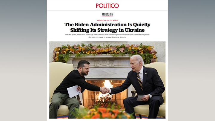 Politico: "США потихоньку меняют свою стратегию на Украине". На самом деле никакой стратегии у США нет. Идет поиск выхода наощупь. Скриншот страницы сайта Politico