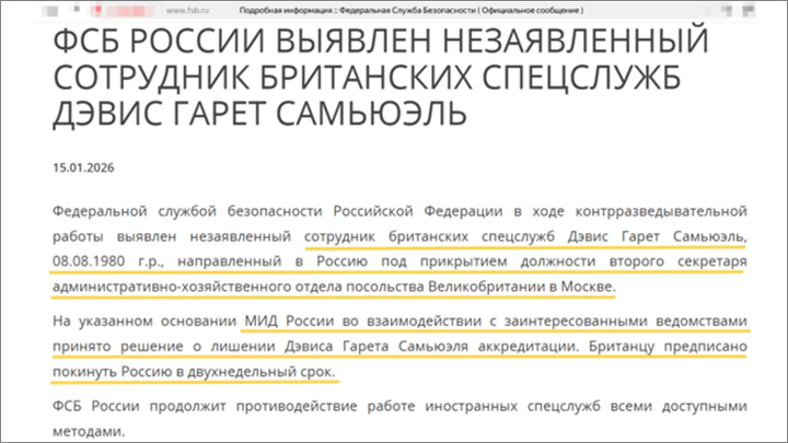 В марте прошлого года, например, из страны по причине "разведывательно-подрывной деятельности" выдворили двух британских дипломатов – второго секретаря посольства в Москве и супруга ещё одного сотрудника. А в сентябре 2024-го так и вовсе накрыли и отправили восвояси целую агентурную группу – сразу шестерых посольских работников.