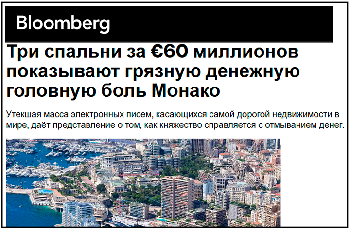 Беглые русские предатели и казнокрады облюбовали Монако. Скриншот с сайта bloomberg.com