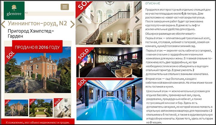 Однако воры, на которых горит шапка, возвращаться в Россию не торопятся. По данным из открытых источников, "беженец" поселился в Лондоне в особняке стоимостью 28,8 млн фунтов стерлингов (эквивалент 3 млрд рублей на момент покупки), расположенном на закрытой от посторонних частной улице Дэнвуд-драйв. На первом этаже расположены холл, гостиная, столовая, кабинет-галерея, зал для завтрака, зимний сад и ещё одна комната. На втором и третьем этажах – спальни с собственными ванными. В цокольном уровне – спортзал, бассейн, сауна, кинозал, бар, процедурный кабинет, гараж на 9 автомобилей, кухня и две комнаты для персонала.