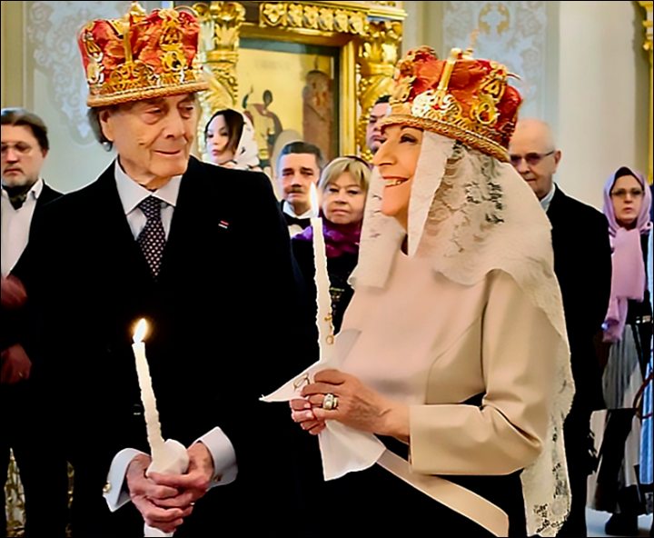 Граф Пётр Петрович Шереметев и его супруга Югетт Бюльтель венчались 29 января 2023 года в Москве. Фото с сайта Международного совета российских соотечественников msrs.ru