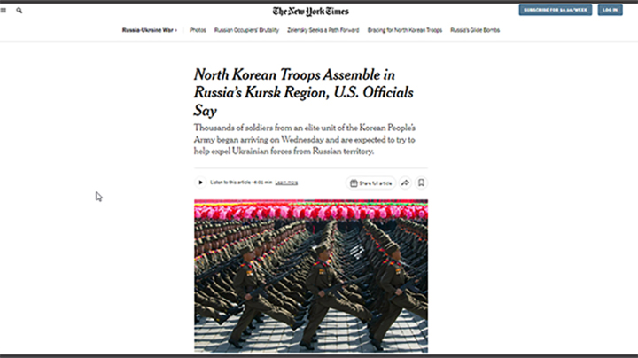 На Западе обеспокоены появлением северокорейцев в зоне боевых действий//Скриншот страницы сайта The New York Times