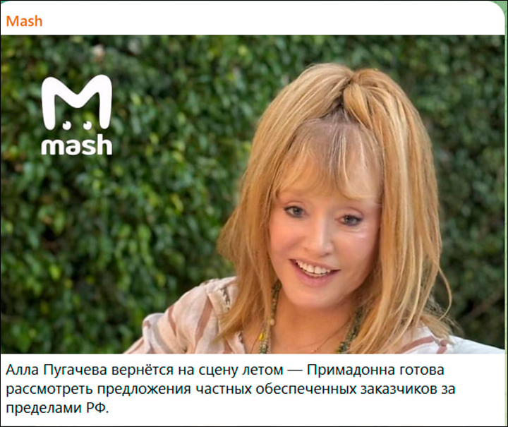 В России мало кто ждёт возвращения "примадонны". Скриншот ТГ-канала Mash