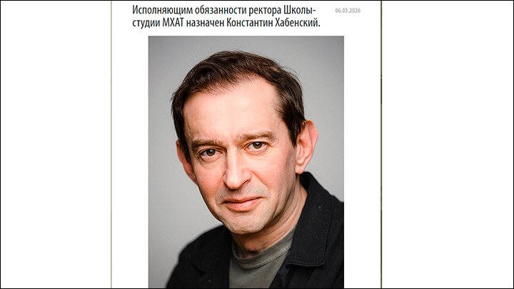 Константин Хабенский назначен исполняющим обязанности ректора Школы-студии МХАТ. Об этом сообщила министр культуры России Ольга Любимова. А Сергей Безруков стал художественным руководителем МХАТа имени М. Горького.